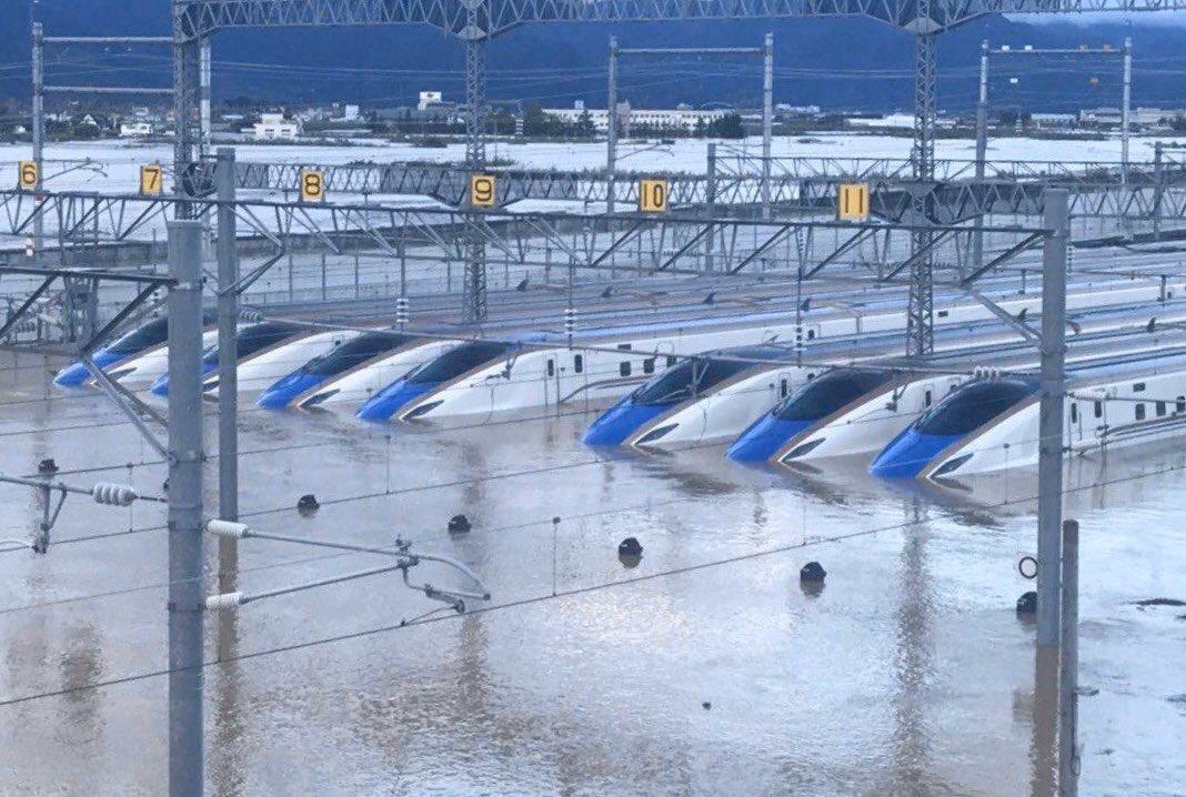 2019年11月08日都是「哈吉貝」颱風的錯!由於颱風天氣的影響,JR東日本的長野鐵路車輛中心的120節「北陸新幹線」車廂因此泡水,經過嚴格的檢查和考量後,JR東日本社長深澤佑二決定將乘客安全擺第一,宣布受影響的車廂通通報廢!