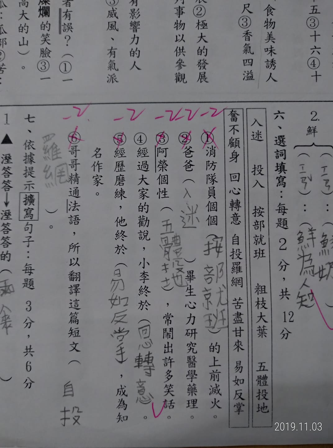 ▼快要暈倒的原PO在貼文最後也大喊「妳才查字典啦!妳全家都查字典啦」,還強力催眠自己女兒是「自己親生的」,讓自己心情平復。她也不忘出賣女兒,PO了一張國語考卷的照片,直批這樣的成語能力很不OK!網友看了考卷也笑說是一種「隨心所欲想填什麼就填什麼」的藝術家態度。