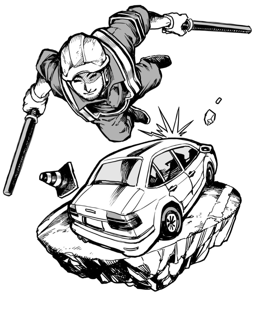 ▼背後的真實身份,也許是個超帥氣的特技車手呢!