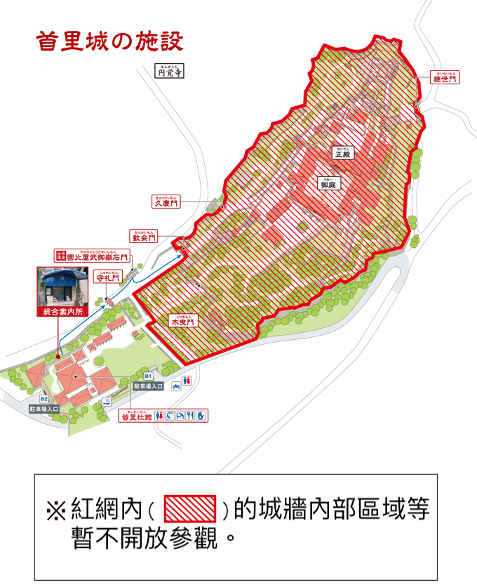 ▼首里城官方網站上,也能看到目前絕大部分區域都遭到封鎖,不開放參觀。