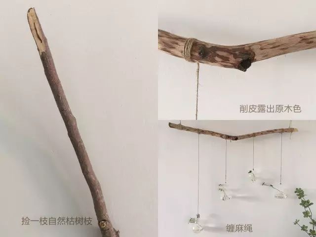 ▼從路邊撿一根枯樹枝,削皮處理一下,就能變成小小的置物架。