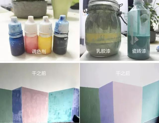 ▼乳膠漆和多種顏料混合,調勻後從底部刷起,直線部分可以用紙膠帶輔助。