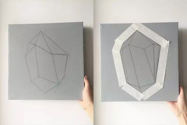 ▼刷過第一層後,以設計好的圖形和色彩作為樣本,用鉛筆輕輕在牆面起稿。