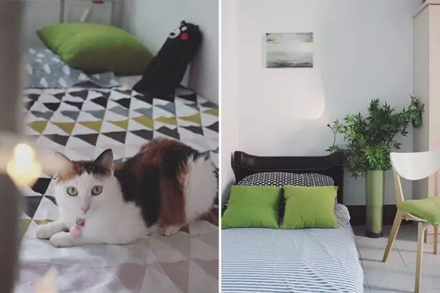 ▼她們養了一隻叫「妙妙」的貓咪,妙妙是一隻愛吃草的喵公主,家裡的綠植幾乎都被她啃過。佈置好所有空間後,牠果斷選擇了這個清新可愛的房間,看來貓咪也有少女心呢。
