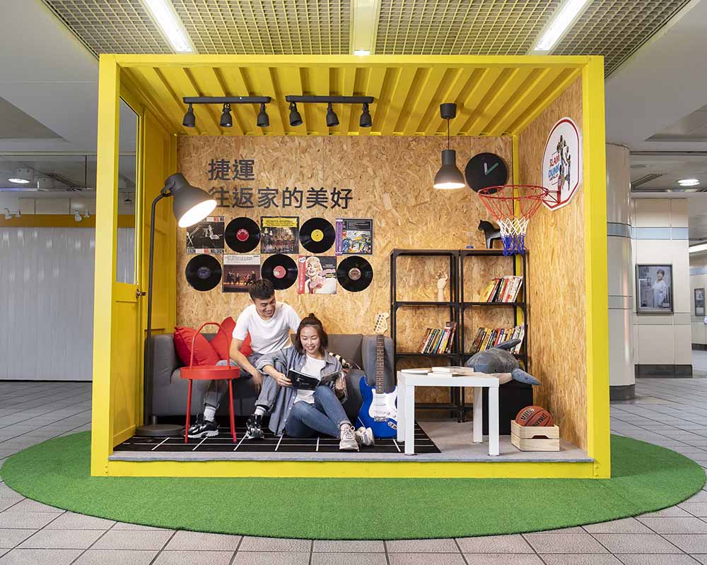 ▼西門站在入口就可以看到已成為IG網紅必備的IKEA小熊及鯊魚大型裝置藝術,加上多彩的輸出貼皮,讓捷運站外觀煥然一新;進到站內可以看到用貨櫃創造的居家空間,運用幾何、對比色系與街頭塗鴉搭配搶眼的產品,而貨櫃屋的背牆還有黑膠唱片造型的留言板,適合喜歡揮灑創意與表達自我的青春世代!