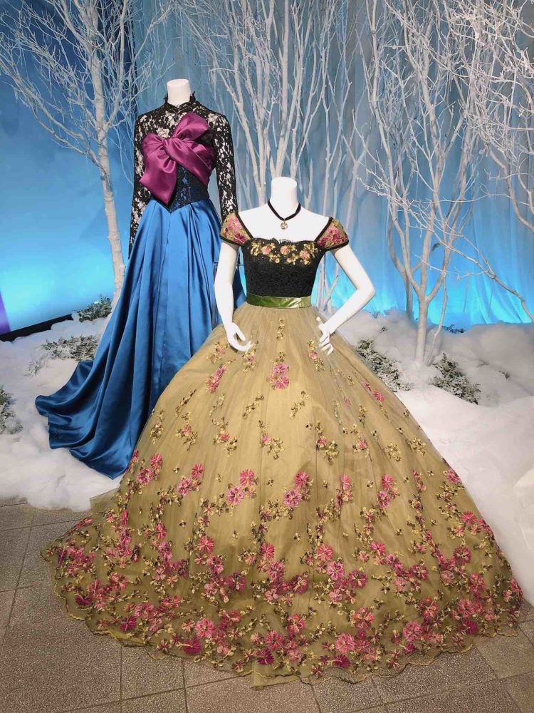 ▼安娜款的婚紗,則設計成帶有艾倫戴爾王國(Arendelle)的民俗風樣式,搭配較為鮮艷的顏色,為女孩們營造出一股與眾不同的氣質!