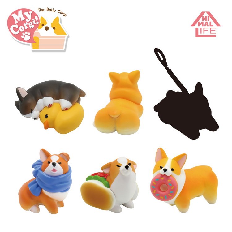 ▼Animal Life 柯基的日常共有6種款式,其中1種「跳躍的科基」為隱藏版。這也是之前「不想回家的柴犬」もんとみ所設計的公仔,以療癒姿態呈現科基的不同面貌!
