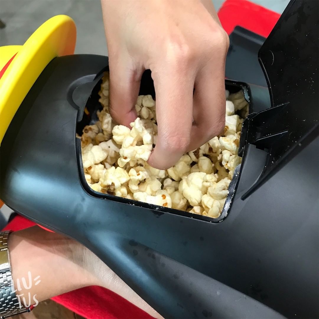 ▼米花桶前面的架子還有隱藏功能,可以拿來放手機XD。