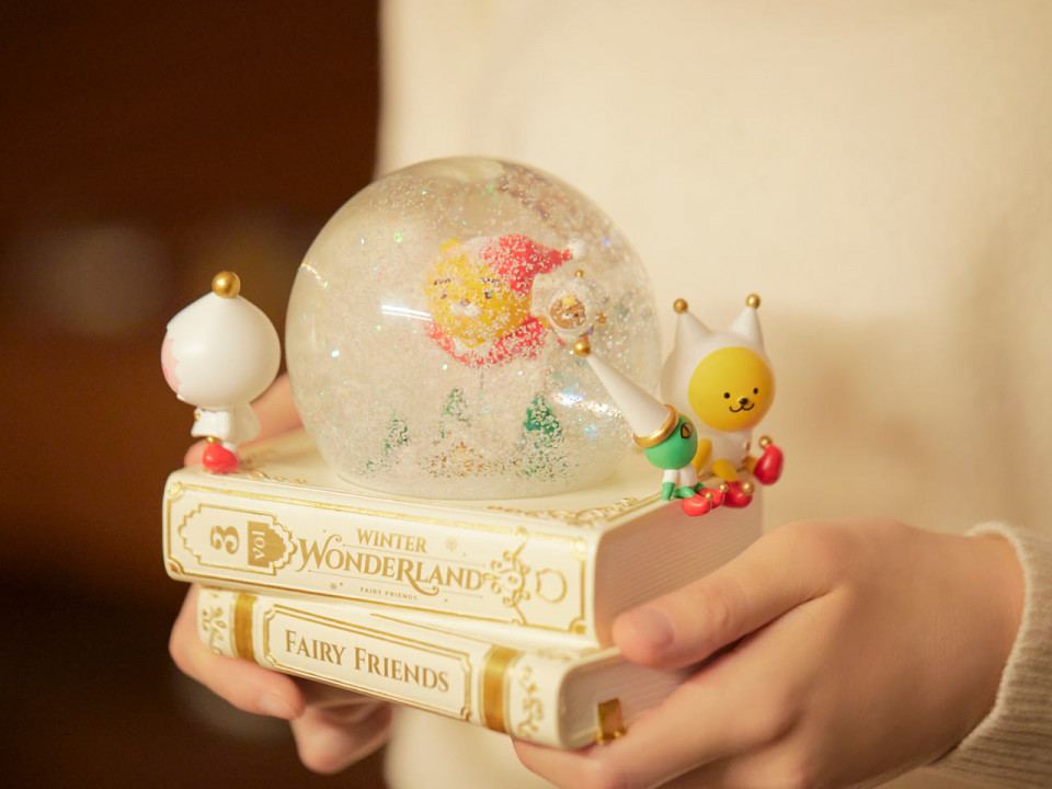 ▼聖誕系列水晶球:水晶球也有大小2種尺寸。大型聖誕水晶球的底座是白色的書本,萊恩在水晶球中看著飄搖的白色雪花,浪漫又夢幻。