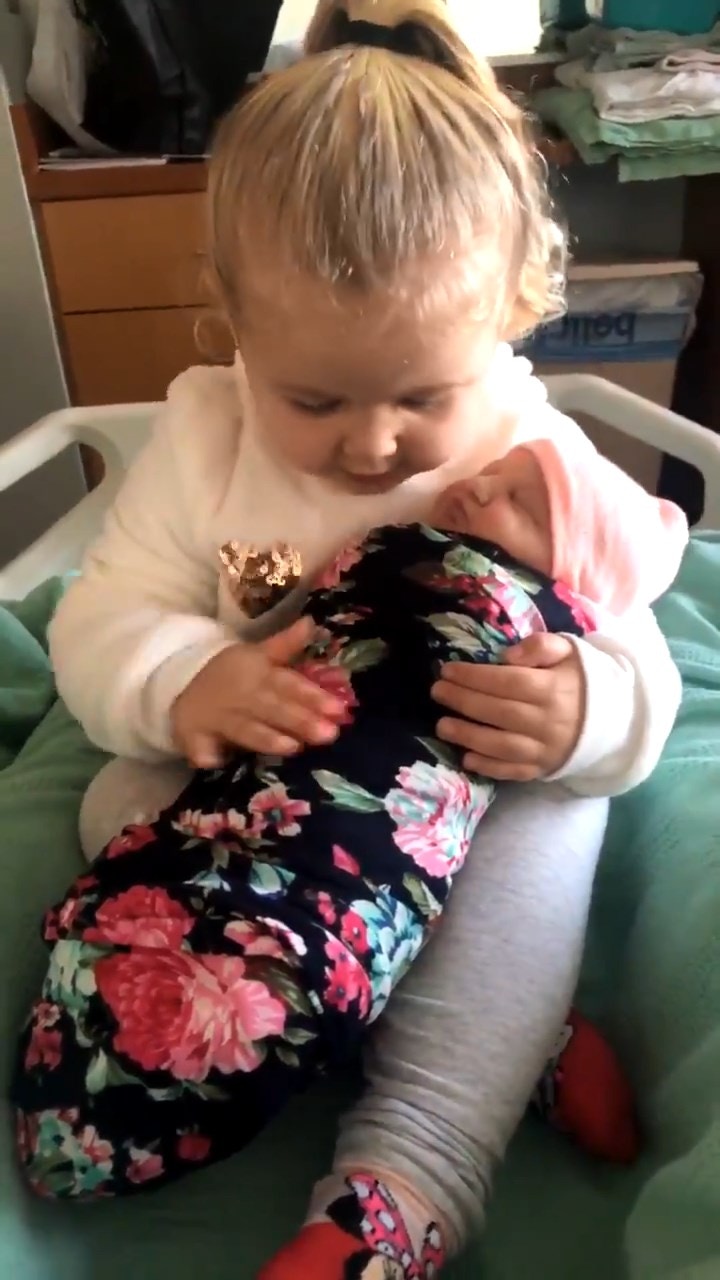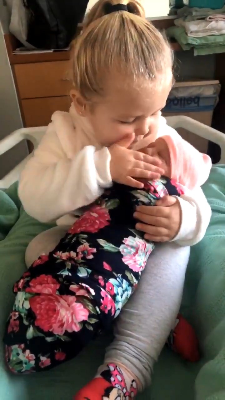 2019年11月21日很多父母生下二胎後,會擔心大寶不開心。美國賓夕法尼亞州媽媽Heather Conley沒有這樣的煩惱。她剛剛生下小女兒Cora,3歲的大女兒Molly到醫院看妹妹時,超溫柔的表現讓人覺得很窩心。