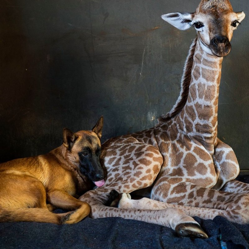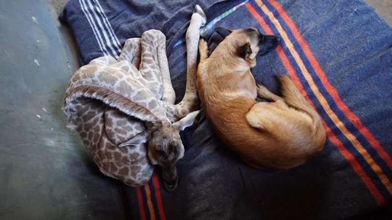 暖汪把野生小長頸鹿「當親兄弟照料」 互相依偎畫面好療癒:睡覺也要一起