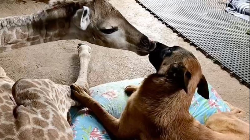2019年11月26日在動物王國裡,有時候會出現讓人驚訝的跨物種友誼。南非有一隻狗狗,跟野生長頸鹿寶寶成為了好朋友。牠們每天待在一起,相互依偎的畫面非常療癒。不過這段友誼注定是短暫的,不久後牠們就要分開了。