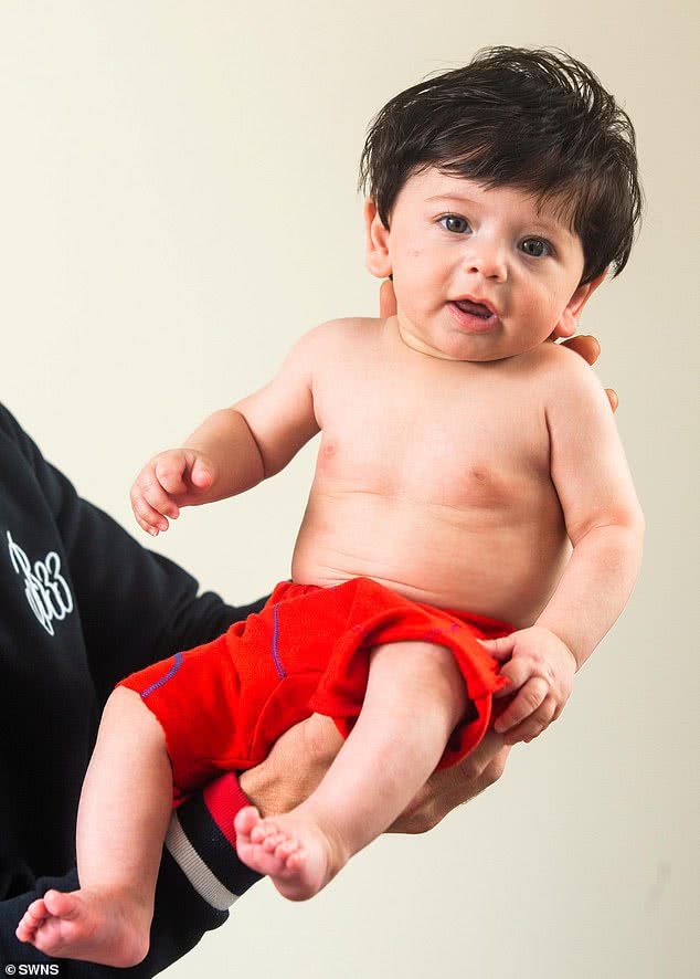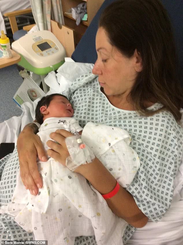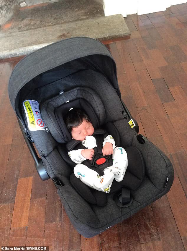 ▼Oscar的媽媽,36歲的Sara Morris介紹說,她懷孕的時候感覺很特別,距預產期還有2個月的時候,就感覺胃部不舒服。她在醫院做孕檢時,醫生看了B超圖,發現她肚子裡的小孩已經有1公分長的頭髮了。
