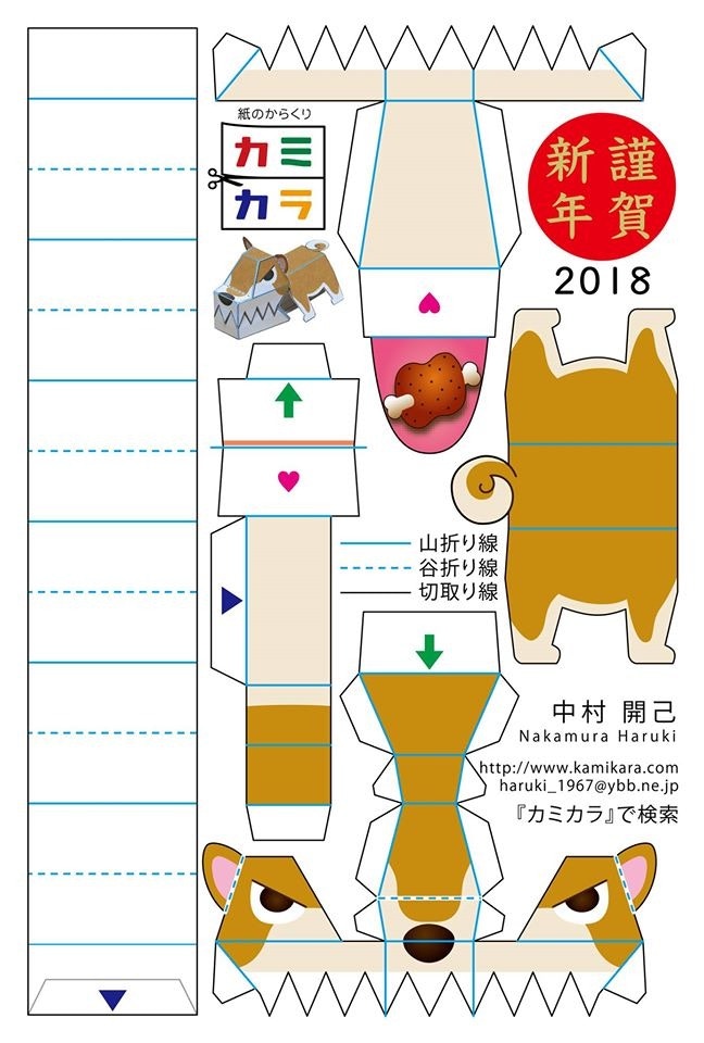 ▼按照上面的指示把部件都裁剪下來摺好,再粘合上需要粘合的部分,就能做成一件機關玩具。