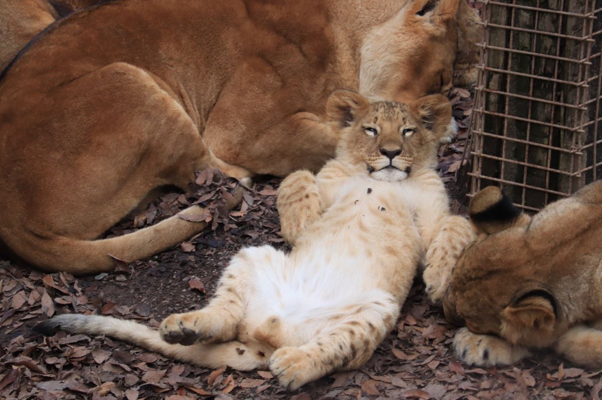 2019年12月01日去動物園中逛逛,能夠看到動物百態,運氣好的話還能捕捉到很多精彩的畫面。日本推主なな(@odekakena_ko)到富岡市的「群馬野生動物園」遊玩時,在獅子園區看到了超有趣的一幕。一隻獅子寶寶竟然睡得「四腳朝天」,看起來很可愛。