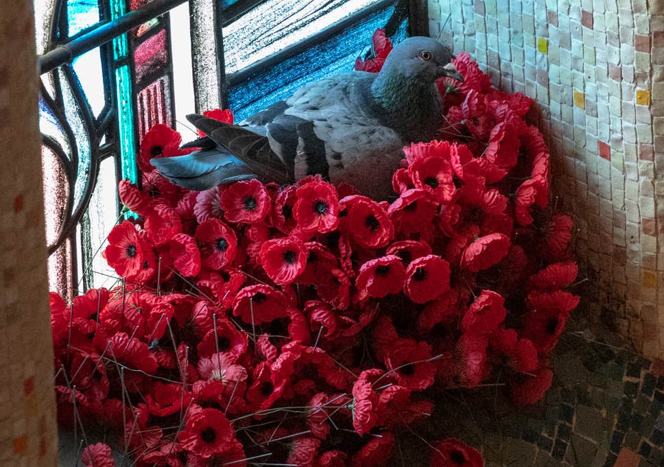 紅豔的罌粟花有著紀念離去將士的意義,而在澳洲的國殤紀念館中,就發現祭奠的罌粟花經常消失,後來他們才找到是鴿子把罌粟花叼去築巢了!現在,這隻鴿子甚至孵下小孩囉~