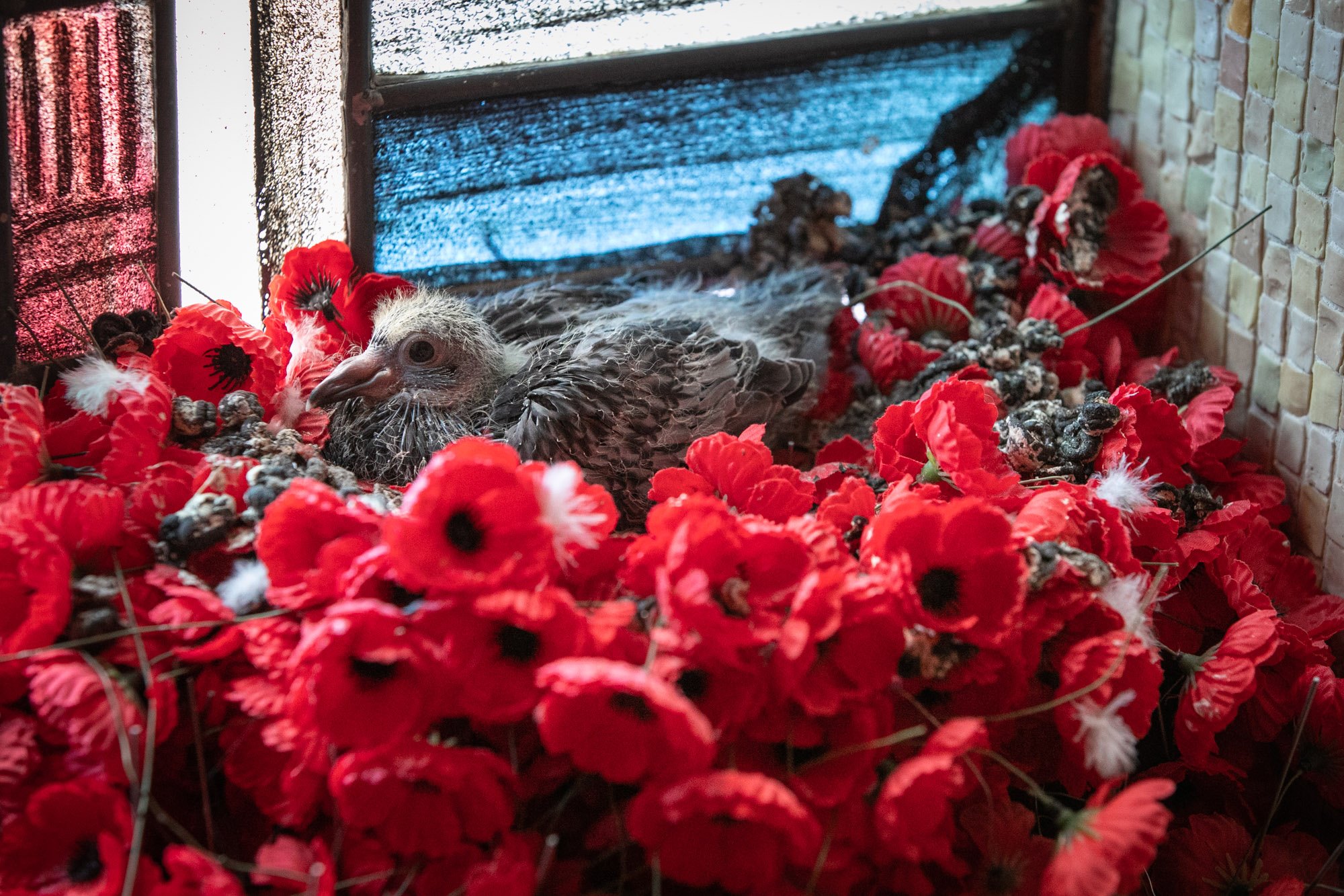 ▼小鴿子懵懂地看著這個世界,而孕育牠的正是從離去將士的墓中,所運來的罌粟花。紀念館表示,這是從不捨地失去中,又孕育出令人喜悅的新生。