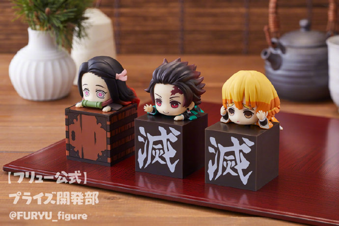 ▼每個公仔都有附贈一個專屬的小箱子,可以看到炭治郎和善逸都趴在一個寫有「滅」字的箱子上,而禰豆子的箱子造型更是她的專屬木箱呢!