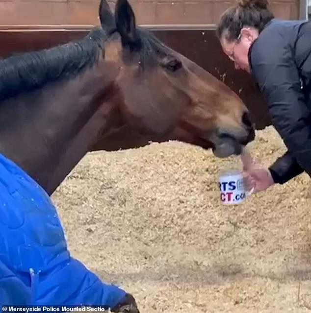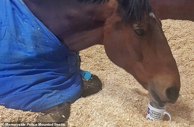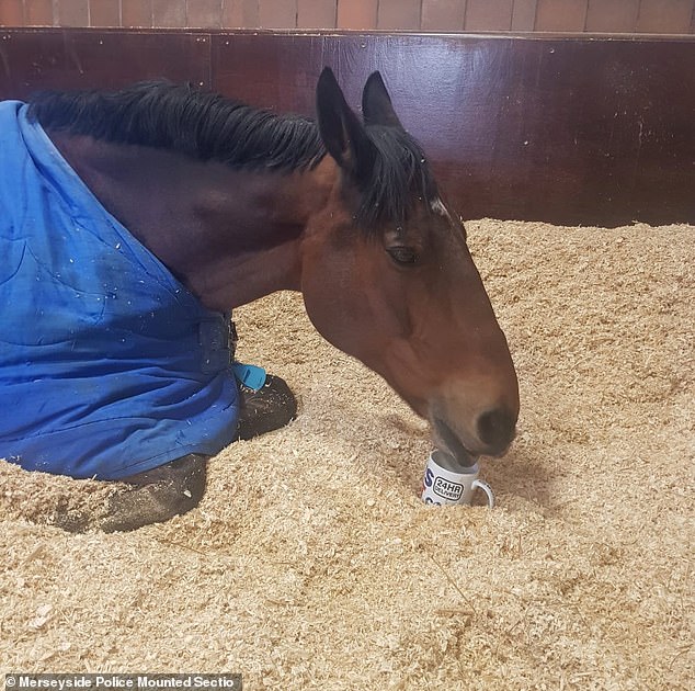 2019年12月02日很多人都有早上喝咖啡的習慣,喝一杯香醇濃郁的咖啡,彷彿全身的細胞都被喚醒了。目前在英國默西賽德郡警察局騎警部門任職的警馬Jake也是如此。不過早晨喚醒牠的不是咖啡,而是茶~