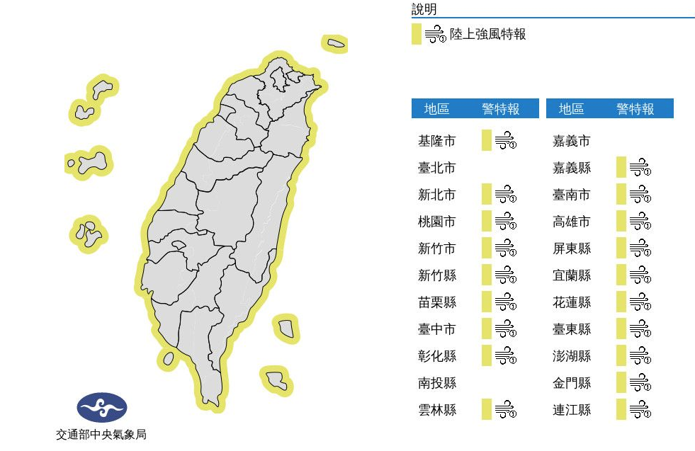 ▼這一波的東北風明顯偏強,氣象局也不斷發布陸上強風特報,台灣各地(含蘭嶼、綠島)及澎湖、金門、馬祖沿海空曠地區易有8至10級強陣風,台灣(含各離島)鄰近海域風浪明顯偏大,浪高可達3至5米;此外,東半部(含蘭嶼、綠島)、恆春半島易有長浪發生,基隆北海岸並有突發大浪發生的機率。