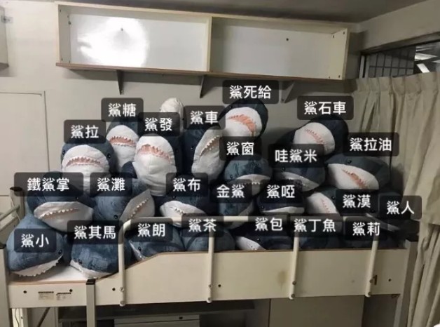 ▼不過其他網友卻紛紛歪樓,紛紛開始討論起這滿坑滿谷的鯊魚娃娃,還有網友在照片上發揮創意,為所有鯊魚一一取名之後分享到 Dcard 論壇上。如此創意滿分的舉動,讓無數網友都笑翻了!