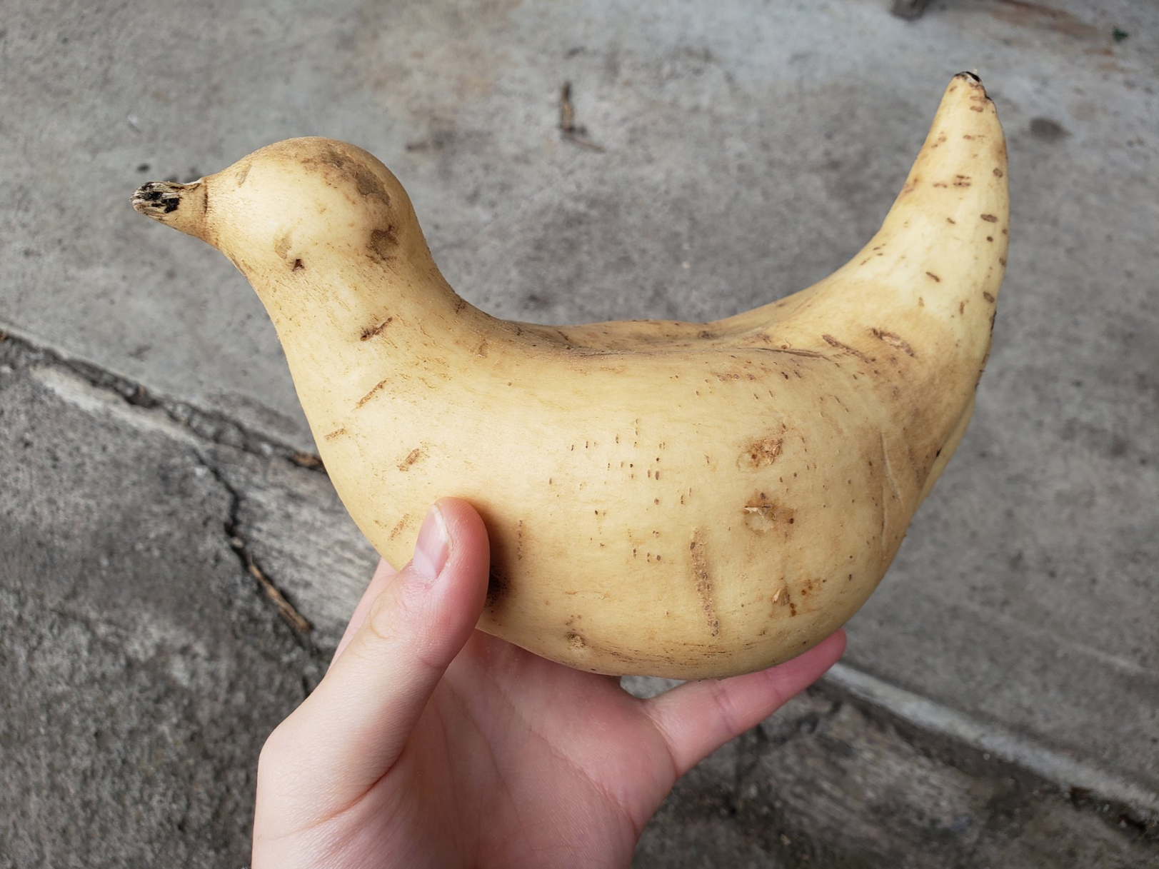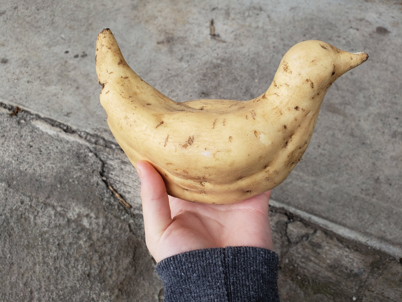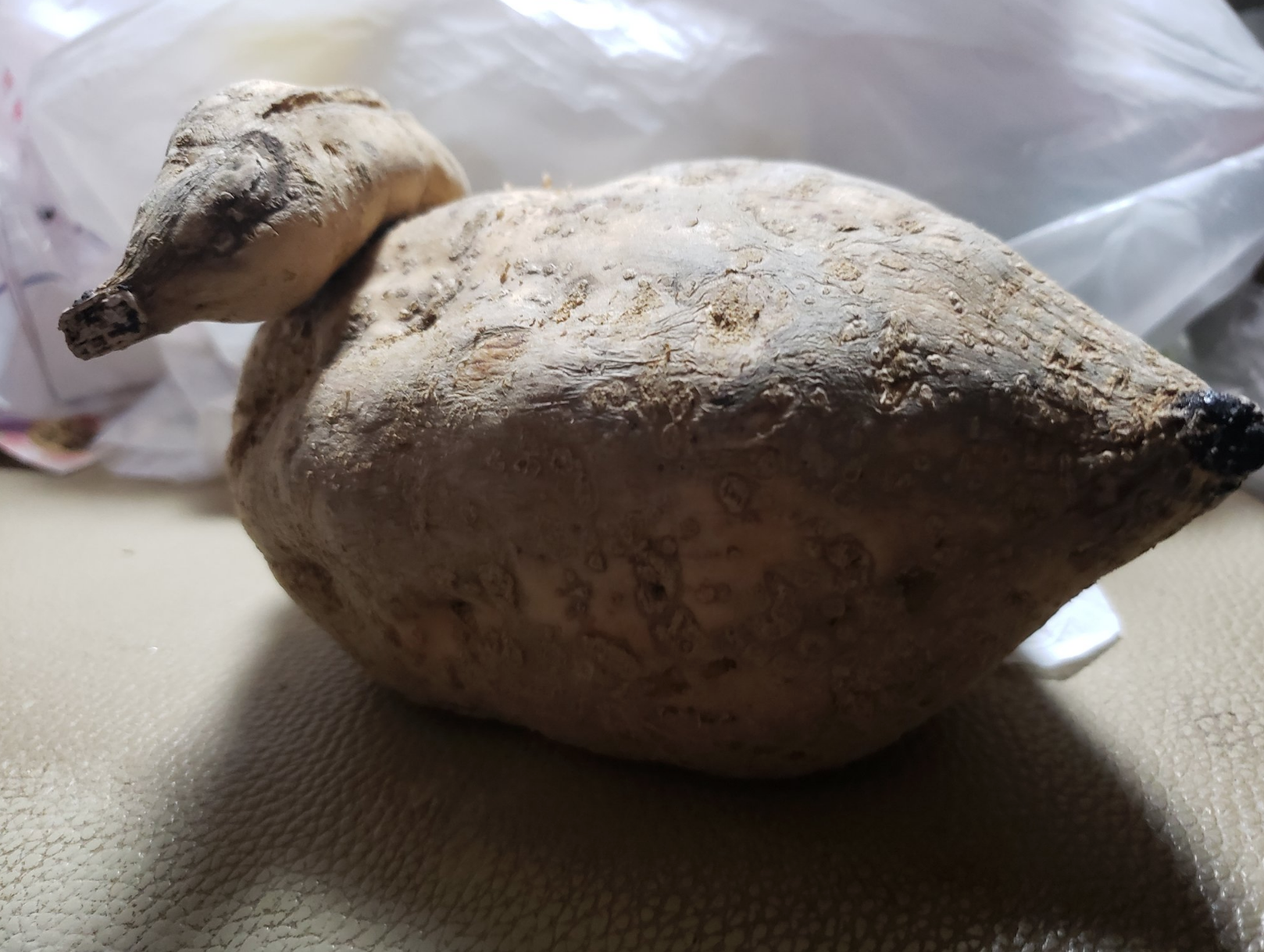這顆馬鈴薯到底經歷過什麼?完全沒想過馬鈴薯竟然可以長成這樣的形狀!遠看肯定會以為這是一隻真鳥!你有看過比這個更奇特的形狀嗎?