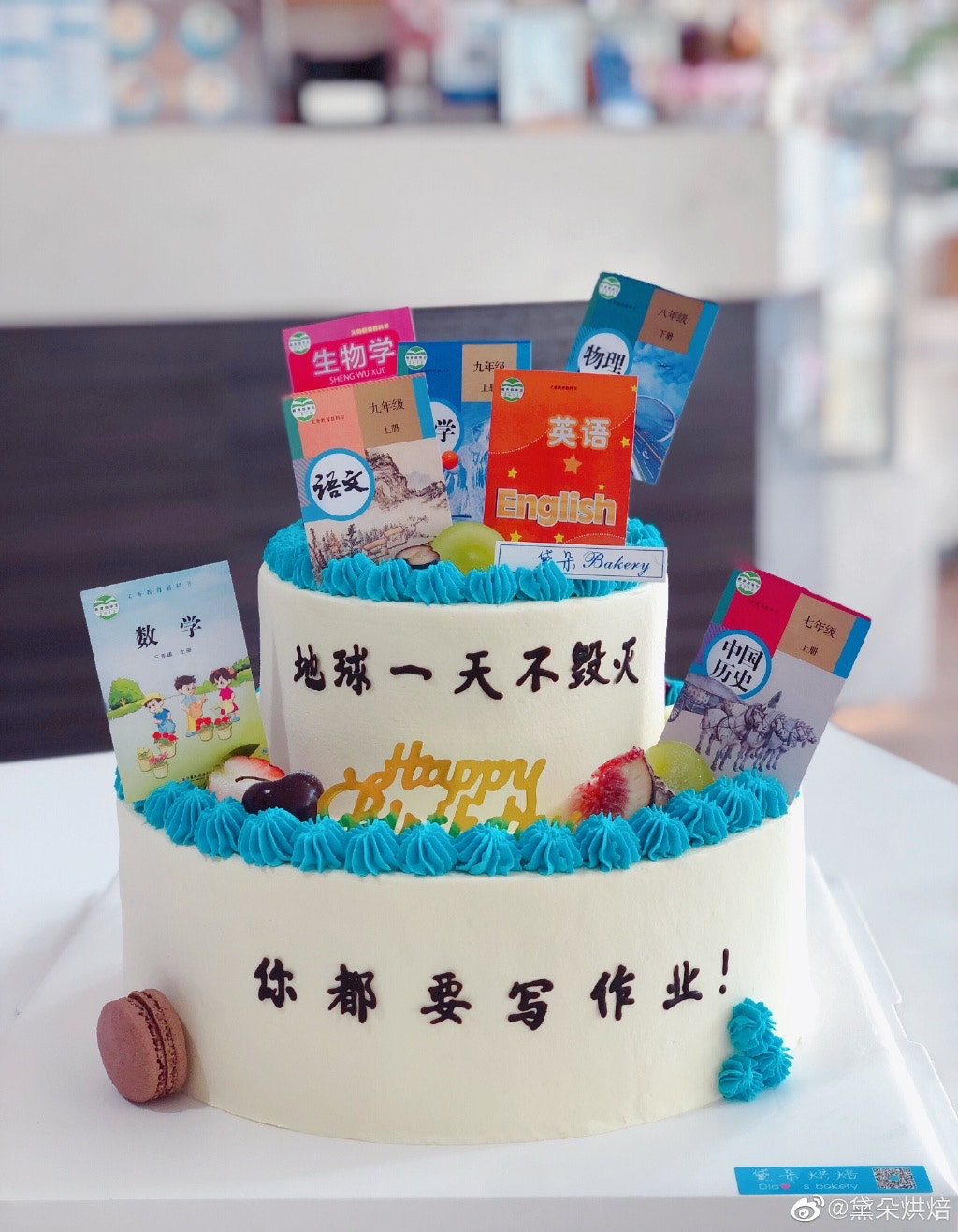 2019年12月05日小朋友大多很喜歡過生日,因為生日那天能吃蛋糕、收禮物,還不用做功課!但下面這名小朋友收到的蛋糕上卻立滿了不同科目的功課裝飾,讓人一看壓力超大。小壽星一臉愁容,網友們則笑翻:「求童年陰影面積!」