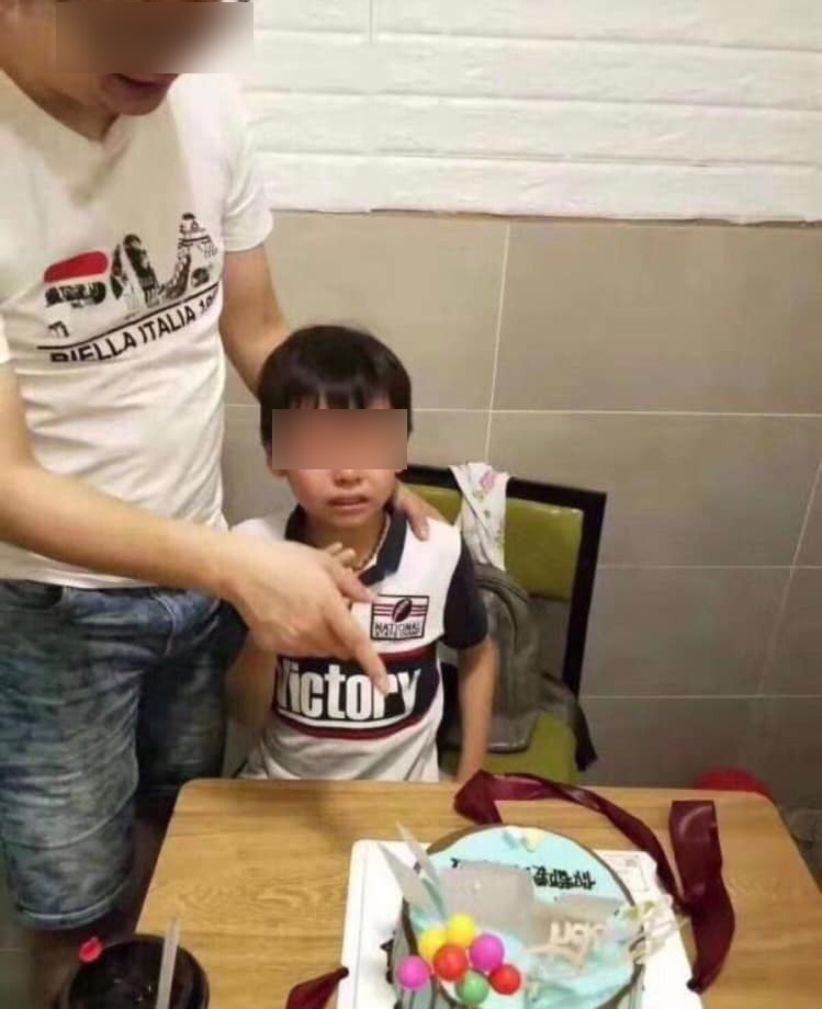 ▼看著這樣的蛋糕,小壽星滿面愁容,一點都不開心,旁邊的大人則滿臉笑容,不停安撫他。