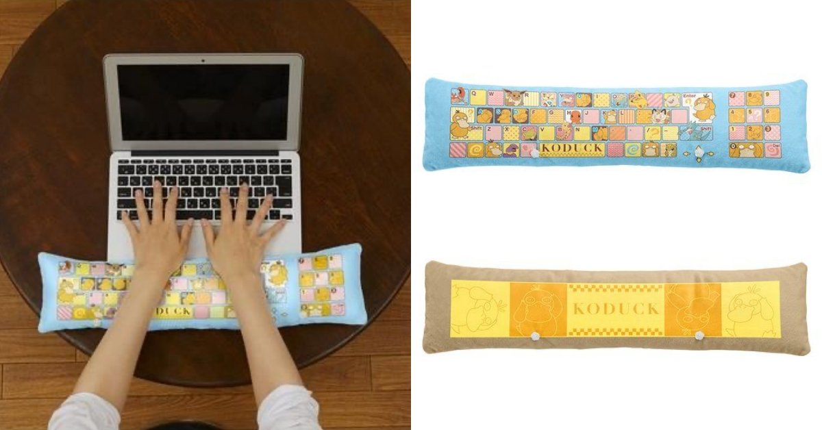 ▼可達鴨附有長型靠枕,上面有仿鍵盤的設計,一看就知道是給上班族用電腦時枕在手下的。滿滿都是可達鴨圖案,看久了會不會不想按電腦鍵盤?