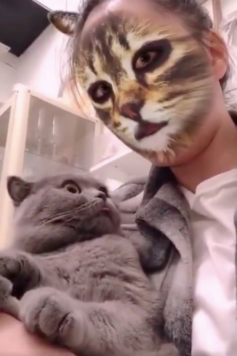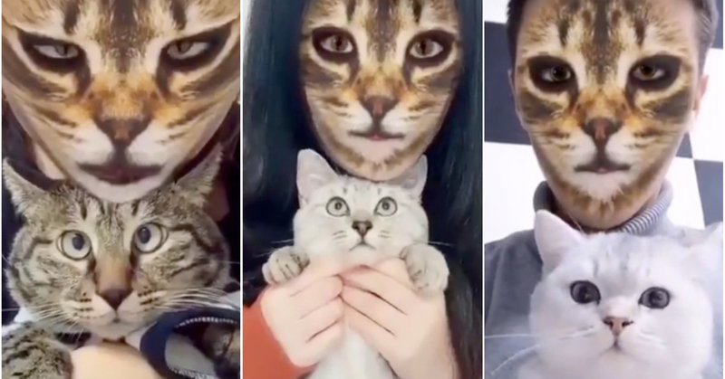 不得不說,現在有趣的App真的太多了!前段時間「換臉App」大火,如今又開始流行一款「人類變身貓臉」的App。很多貓奴在自家的貓咪面前玩,平時一副淡定模樣的貓咪全都傻眼了。牠們小小的腦袋大概想不明白:「我的鏟屎官到底怎麼了?!」