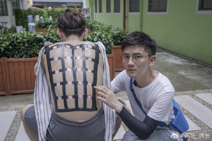▼看到實驗方法大家都先笑了出來,原來他在男生的背上貼上俗稱「電火布」的黑膠帶,分出20格的空格,一格塗一種防曬乳。為了減少實驗的誤差,每一款防曬乳都是防曬係數最高的SPF50(但巴黎萊雅只買得到SPF42)。