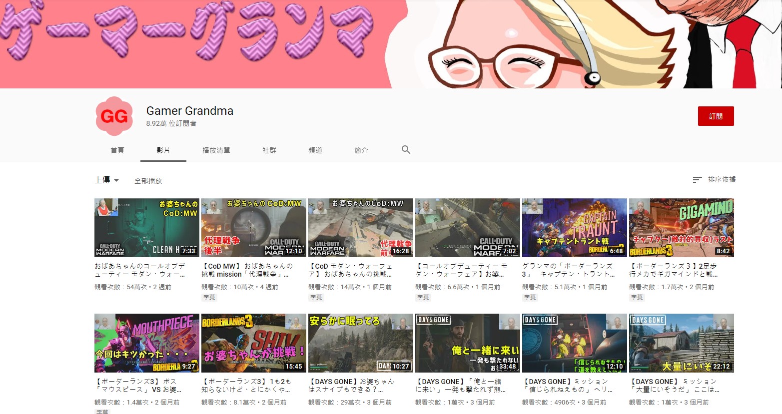 ▼而她的孫子看到自己的阿嬤如此熱衷於遊戲,就為她開設了這個直播帳號,也為她剪輯、上傳影片,讓許多影片都有超過10萬次的觀看次數,最新一部影片甚至還超越了50萬的觀看次數!