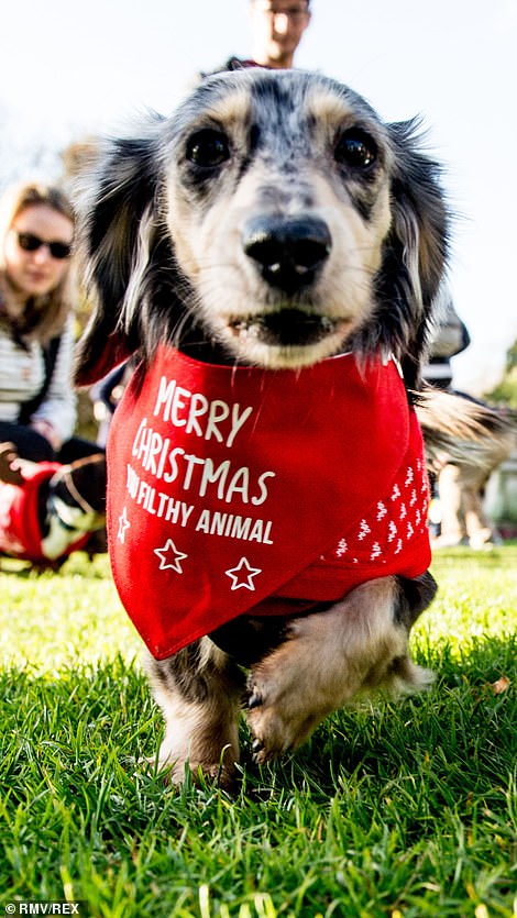 ▼這一活動每年聖誕節前夕都會舉辦,雖然大家都忙著為節日做準備,但還是會帶著裝扮好的狗狗來參加。