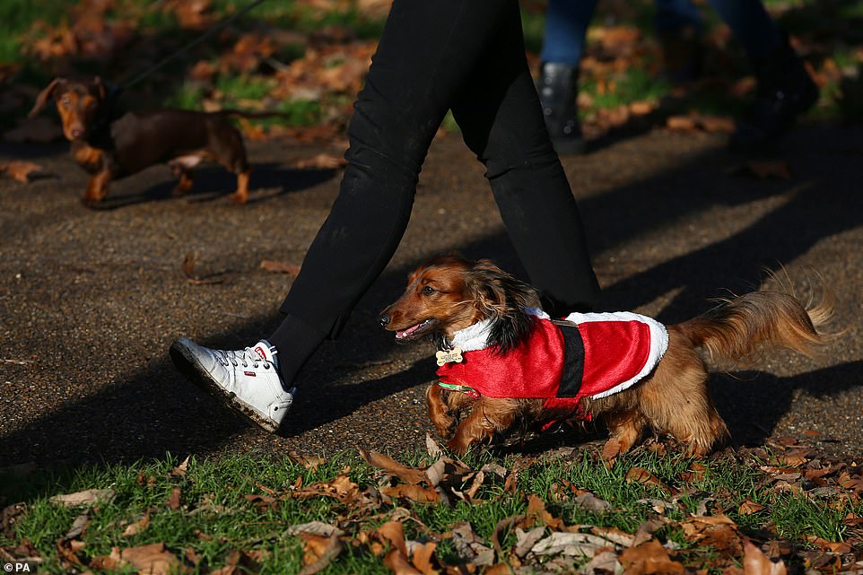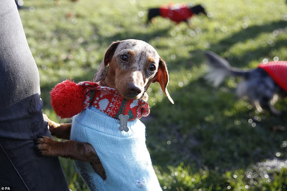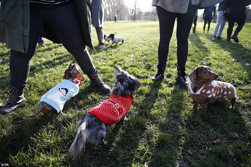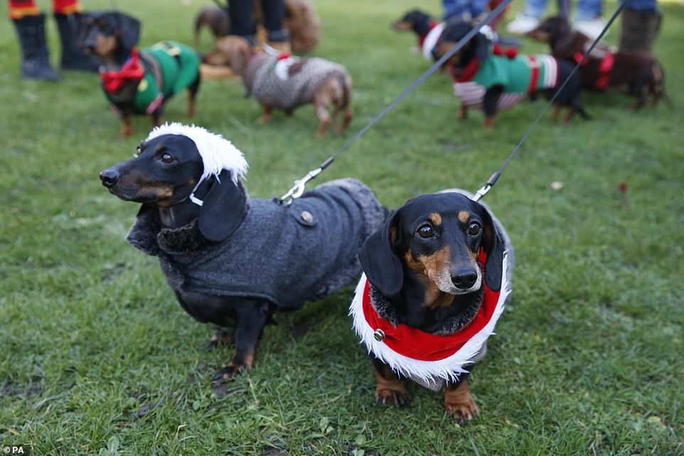2019年12月17日每年12月,英國倫敦海德公園(Hyde Park)都會變成臘腸狗狗的海洋。牠們有的穿著聖誕服裝、有的戴著精靈帽子,在節日前齊聚一堂。去年的時候,300多名飼主帶著500多隻臘腸狗來參加活動,今年場面更盛大~