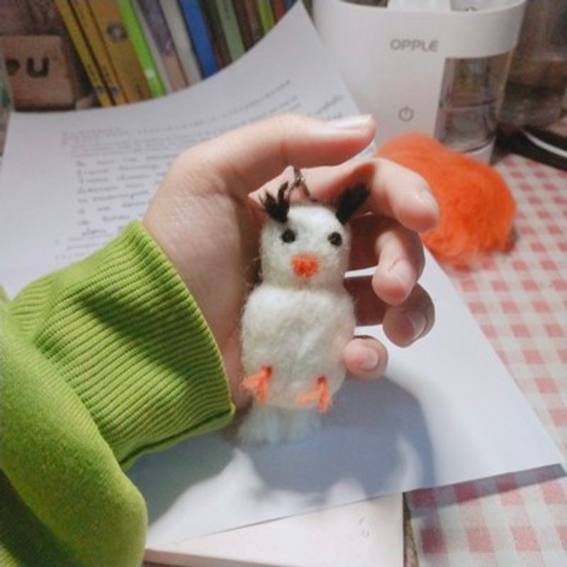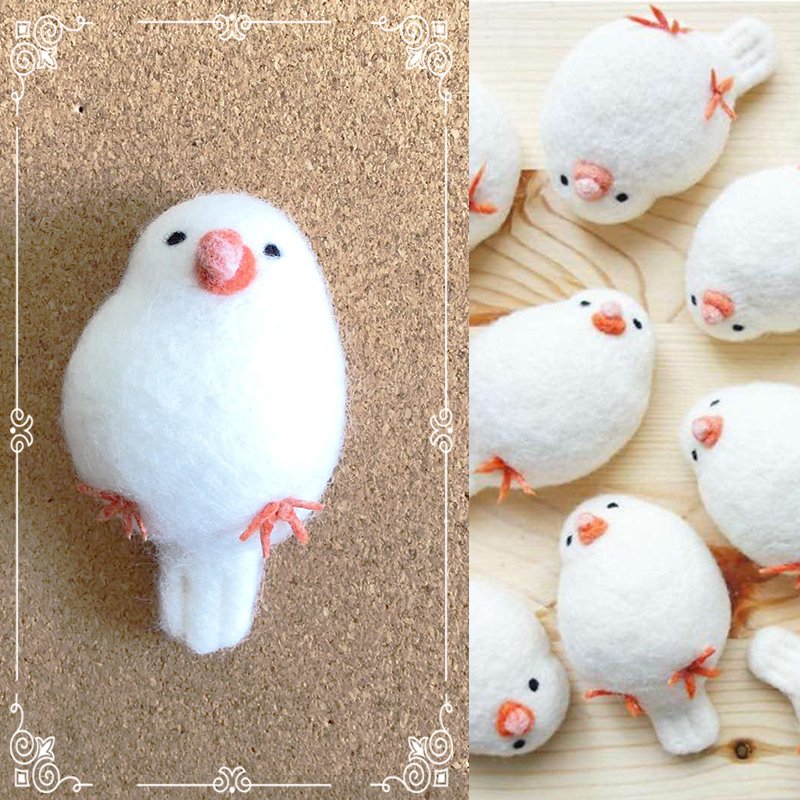 ▼網友理想中用羊毛氈材料包做出的白文鳥是這樣的,圓潤的白色小鳥非常可愛,再加上小爪子、眼睛等細節,看起來更加Q萌。