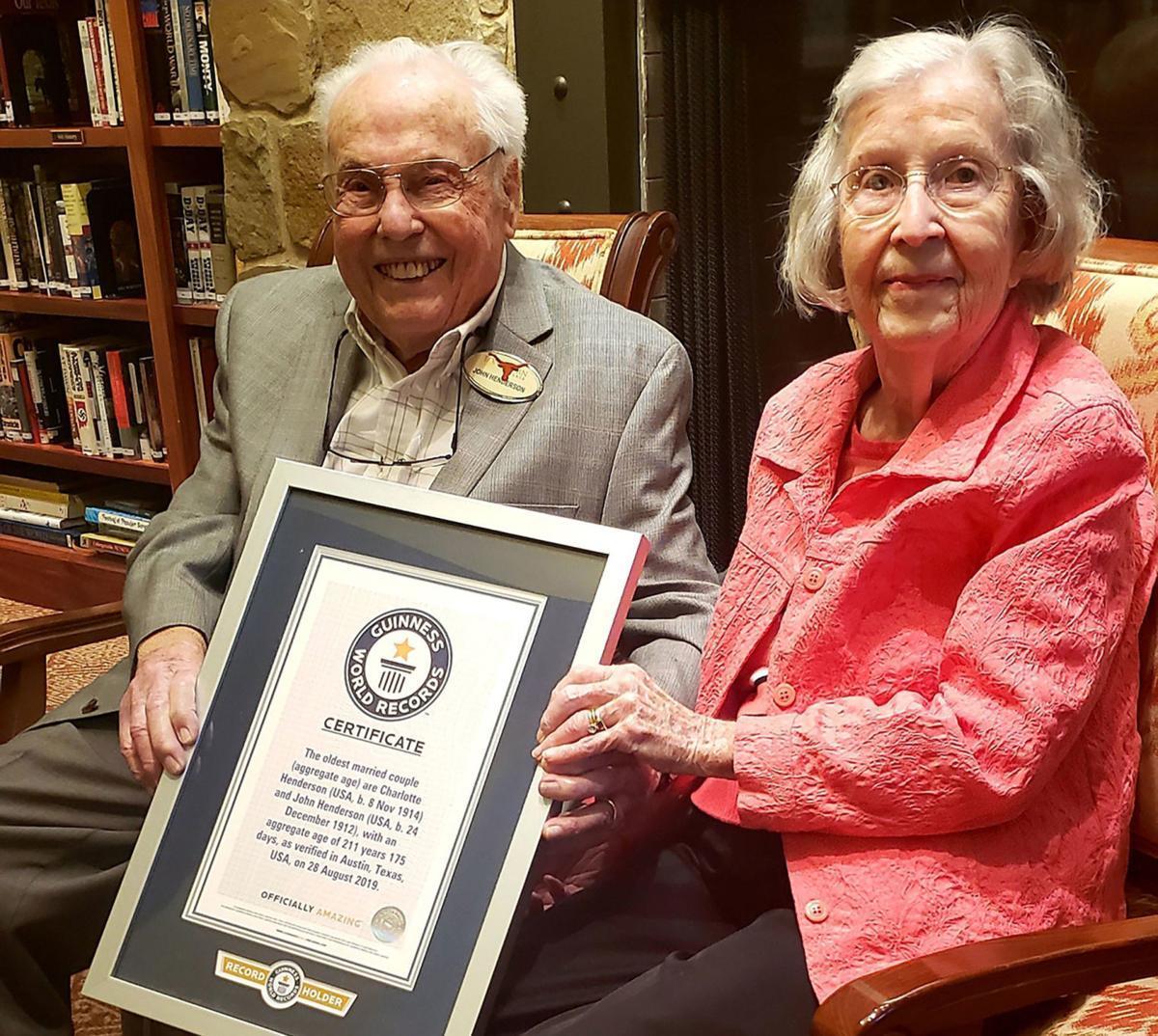 美國德州奧斯汀(Austin)有一對長壽的夫婦,今年12月15日,他們慶祝了結婚80週年的紀念日。他們也是世界上最年長的夫婦,Charlotte Henderson已經105歲,John Henderson為106歲,他們的年齡加起來足足有221歲啦~