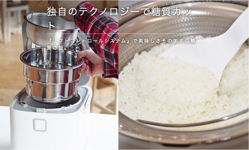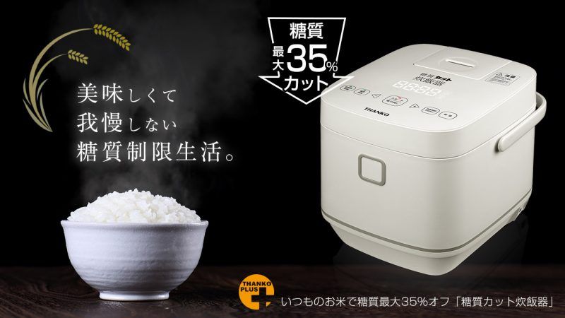 ▼THANKO推出的「減糖電鍋」完美解決了這個問題。它能降低米飯中35%的糖份,上市後在日本大受歡迎,很多媒體也有報導。
