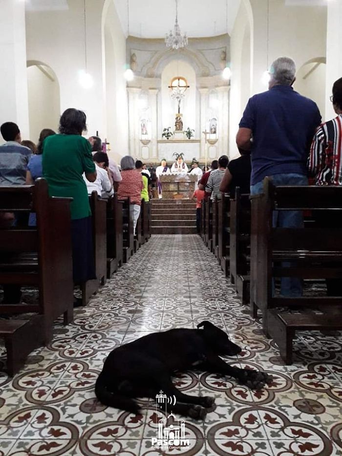 ▼João做彌撒時會讓浪浪待在教堂最醒目的地方。浪浪會躺在地上呼呼大睡,醒來時還會跑到人們身邊討摸摸。這美好的互動讓人覺得很溫暖,也讓更多人注意到了這些可愛的毛孩。