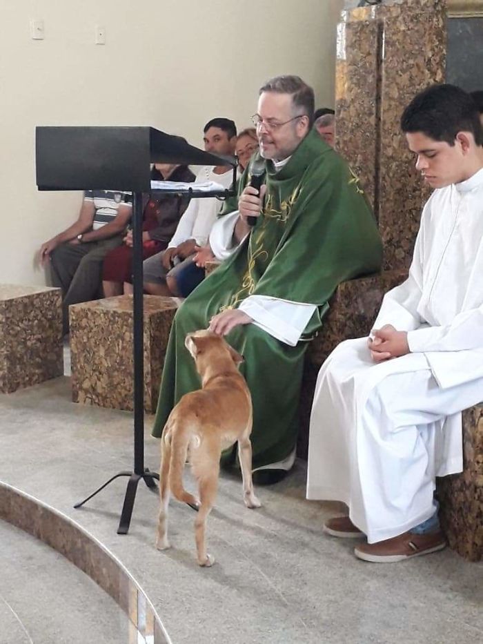 2019年12月24日每一座城市中都有很多無家可歸的狗狗,也有很多人願意對牠們伸出援手。巴西Paróquiade Sant’AnaGravatá教堂中有一位暖心的神父,他每個星期天都會帶浪浪到教堂做彌撒,希望能夠幫牠們找到溫暖的家。