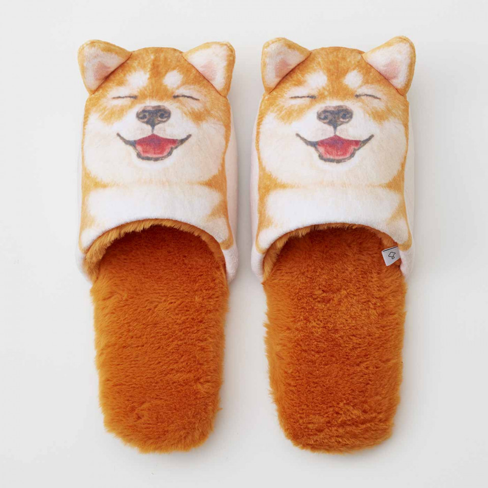 ▼原生柴柴毛色款,上面是柴犬超療癒的笑臉,毛茸茸的內襯穿起來鬆軟舒適,就像把腳放在倒在地上撒嬌的柴犬肚子上呢!