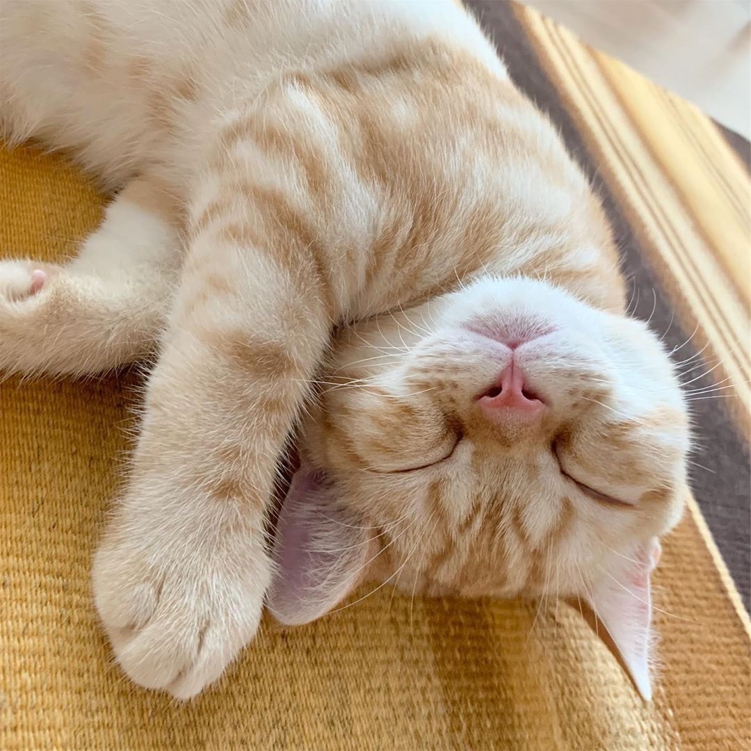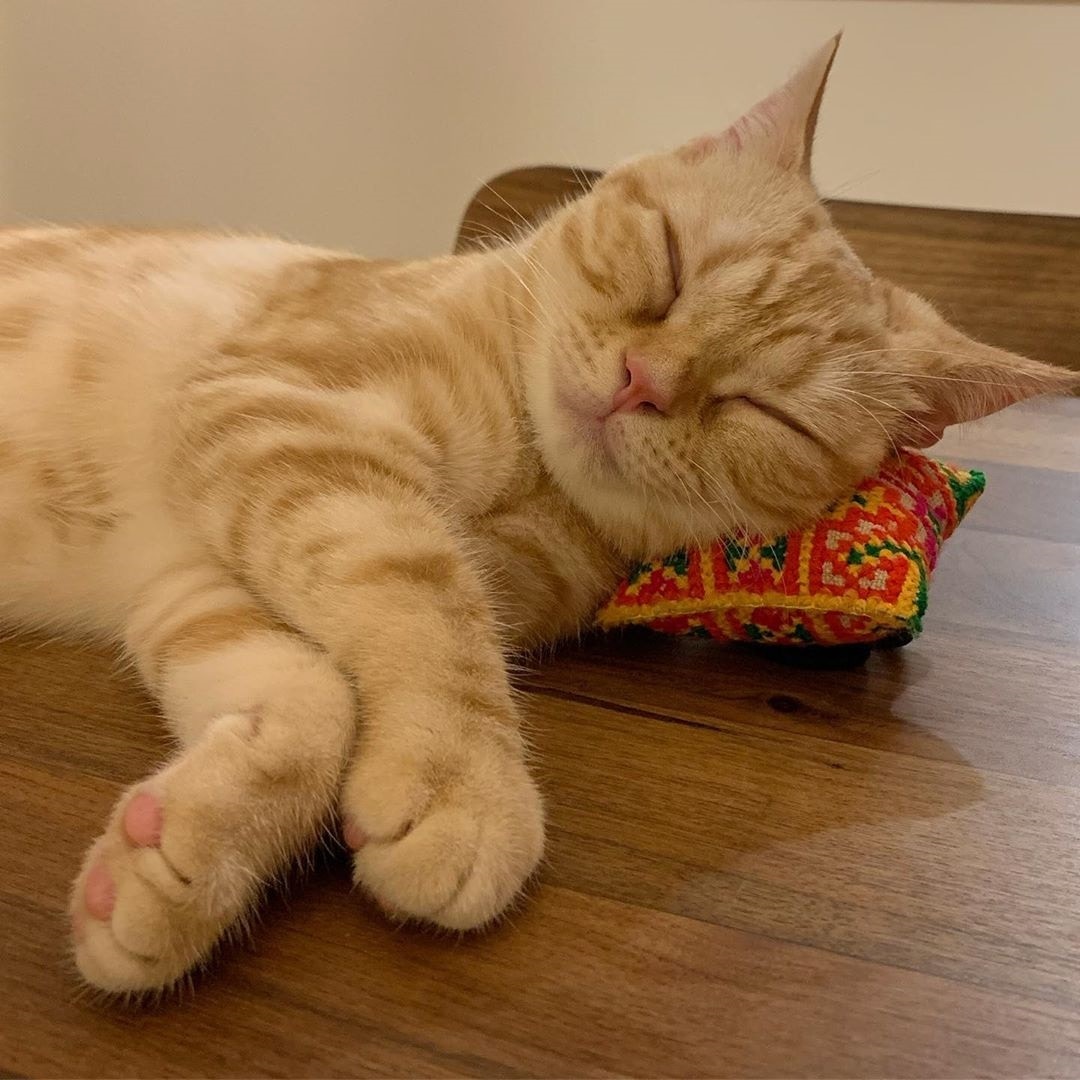 主人幫忙按摩時,貓咪舒服到睡著的模樣好可愛。主人也很專業,從爪爪到肩頸,連耳朵都按了,服務很周到啊~