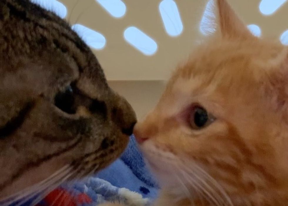 ▼Zephyr原本也是一隻浪浪,Aly臨時照顧牠時被吸引,最後乾脆收養了牠。在Aly的影響下,牠變成了一隻內心充滿愛的貓咪。牠發現躲在箱子中的Finn後主動跑進去,溫柔跟牠碰鼻子,緊張的Finn很快放鬆了下來。