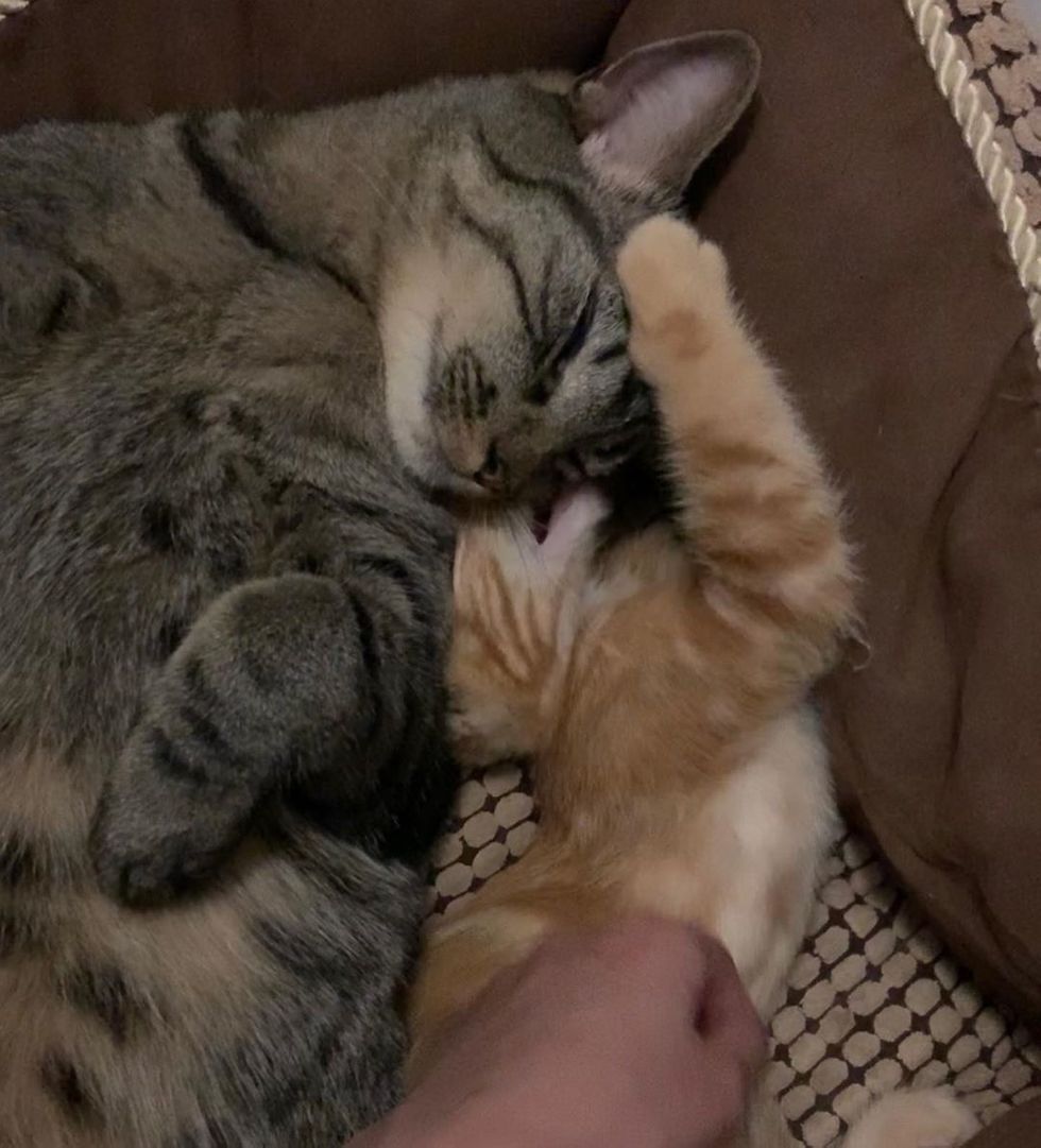 ▼有Zephyr的陪伴,短短幾天後Finn就適應了新環境。兩隻貓咪每天待在一起,看起來超有愛。雖然Zephyr不是Finn的媽媽,卻給了牠無盡的愛,並引導牠成長。