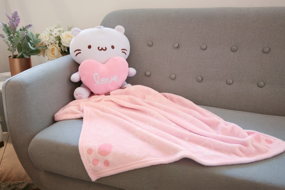 ▼年末還在考慮要送親朋好友或另一半什麼禮物嗎?不妨考慮這款超可愛的「舒悅特×麻吉貓」限量抱枕毯系列!