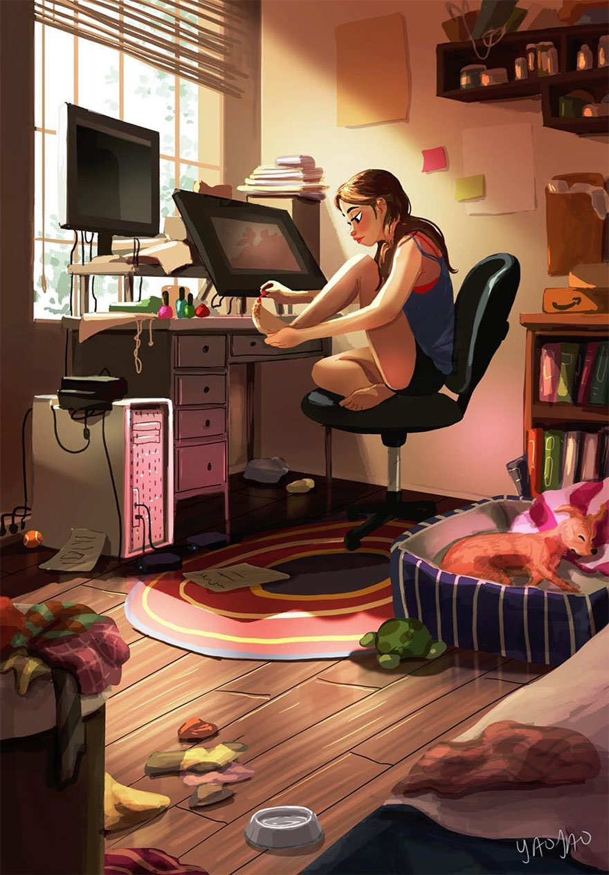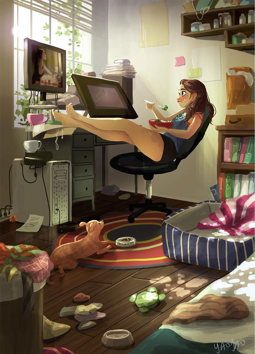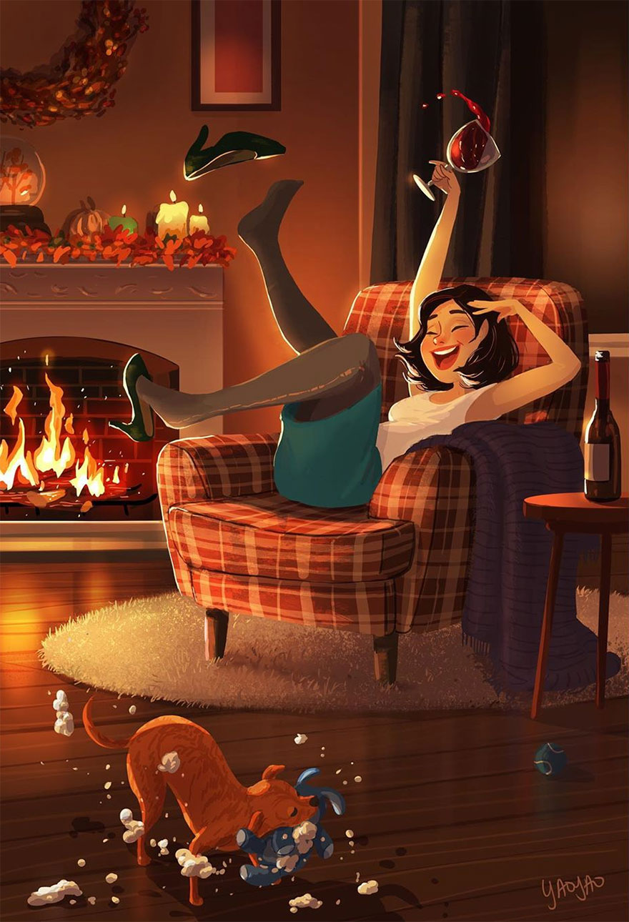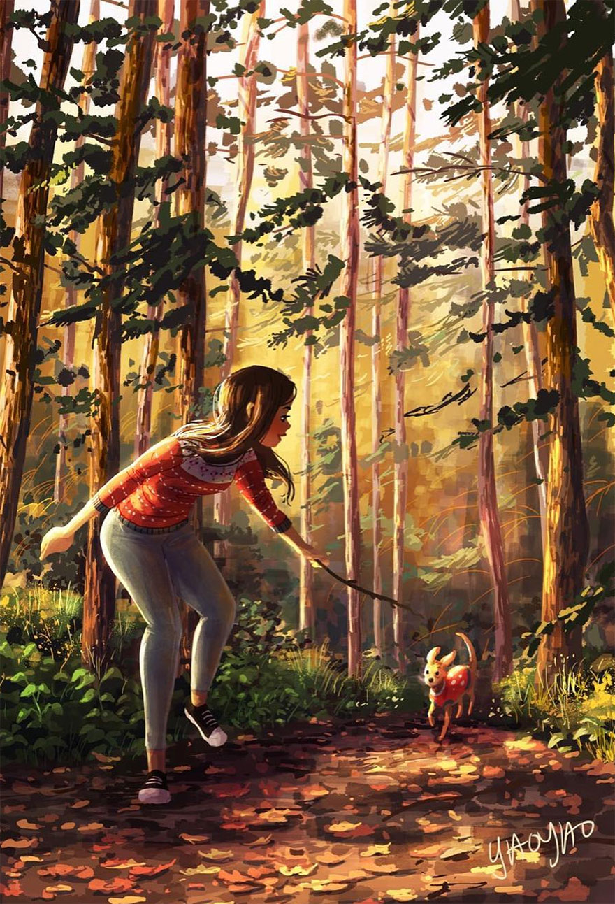 2020年01月03日研究發現,養狗的人幸福指數比一般人要高。因為不管在什麼時候,狗狗都會默默守護在身邊,用牠們的方法療癒你的心。美國插畫家Yaoyao Ma Van As將單身女孩跟狗狗的溫馨日常呈現出來,這些平淡的生活細節擁有觸動心靈的力量。