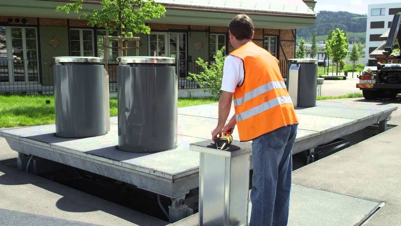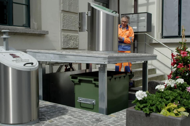 ▼這款垃圾桶叫做「Villiger」,別看它很不起眼的樣子,其實它有一部分是藏在地底下!