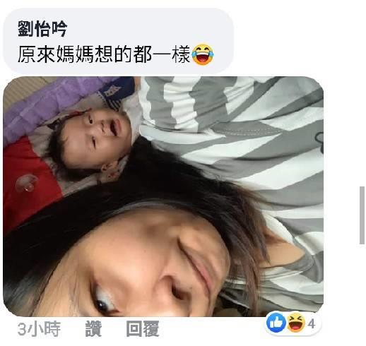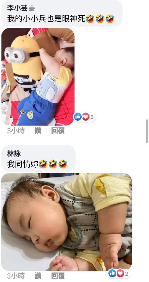 網友們看到這張照片都很懂媽媽的感受:「媽媽白眼翻的非常自然」、「媽媽表情100分。太傳神了」、「這位媽媽加油,寶貝的笑容很燦爛」、「我的雙胞胎 輪流睡覺起來 我也根本沒睡飽過」、「這個有點生動了 哈哈哈哈」。