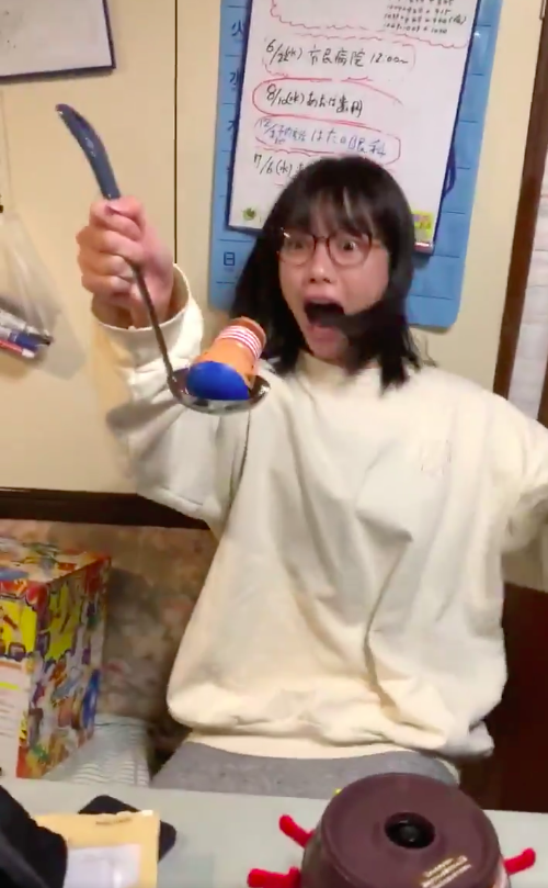 ▼​作為女團成員,佐倉ちひろ平時很注意表情管理,但海盜跳進匙子裡的一刻,她驚訝又興奮,簡直要跳起來,那誇張的反應超好笑。