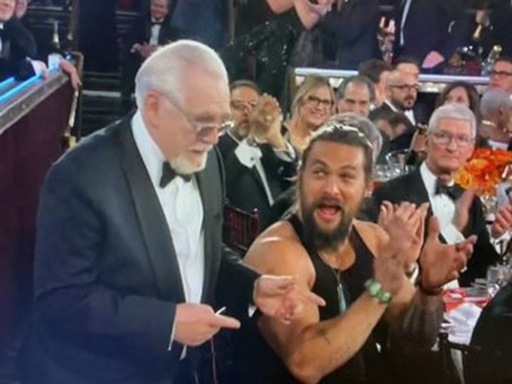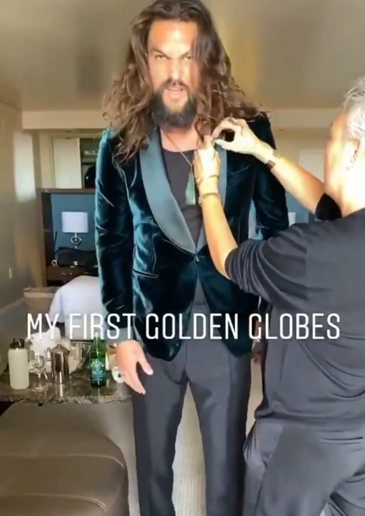 ▼金球獎頒獎典禮當晚,一些觀眾發現傑森摩莫亞只穿著黑色背心,頭髮也隨意束起來。雖然他露出的健碩手臂很有男人味,但在這樣的場合未免不夠莊重。