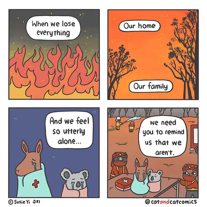 澳洲野火牽動著全世界人的心,這些插畫讓人忍不住紅了眼眶。但逆境中也有希望,未來一定會好起來的!